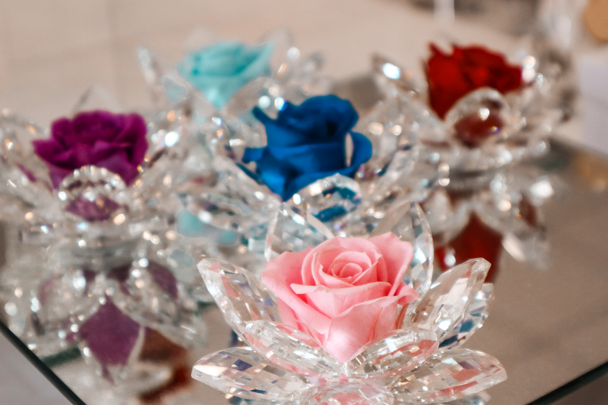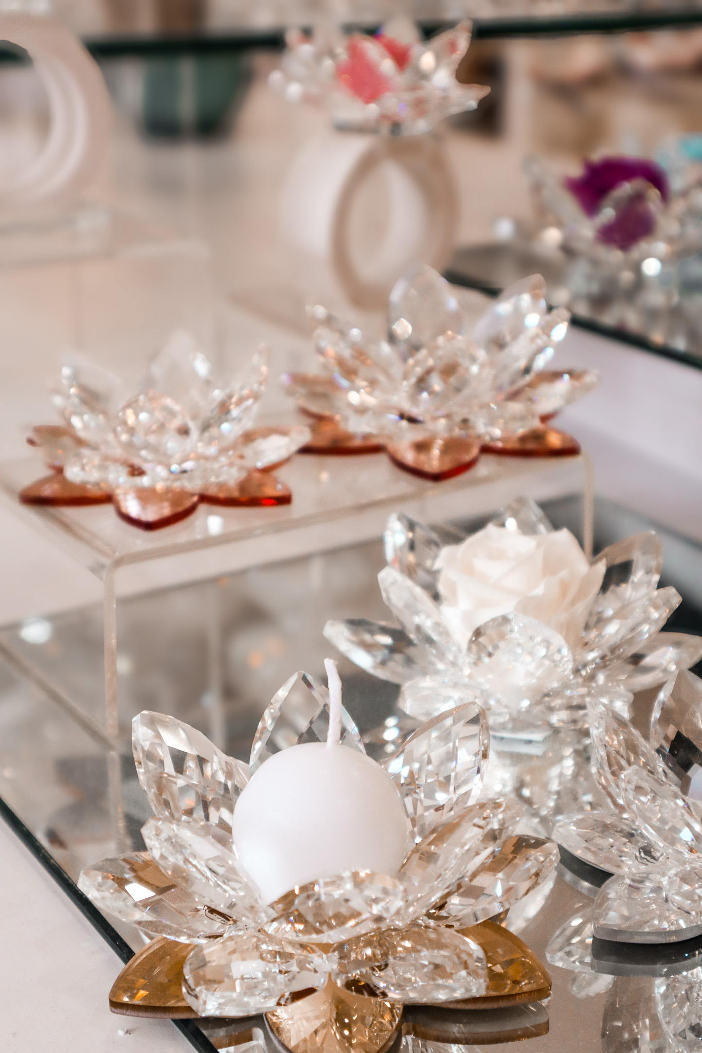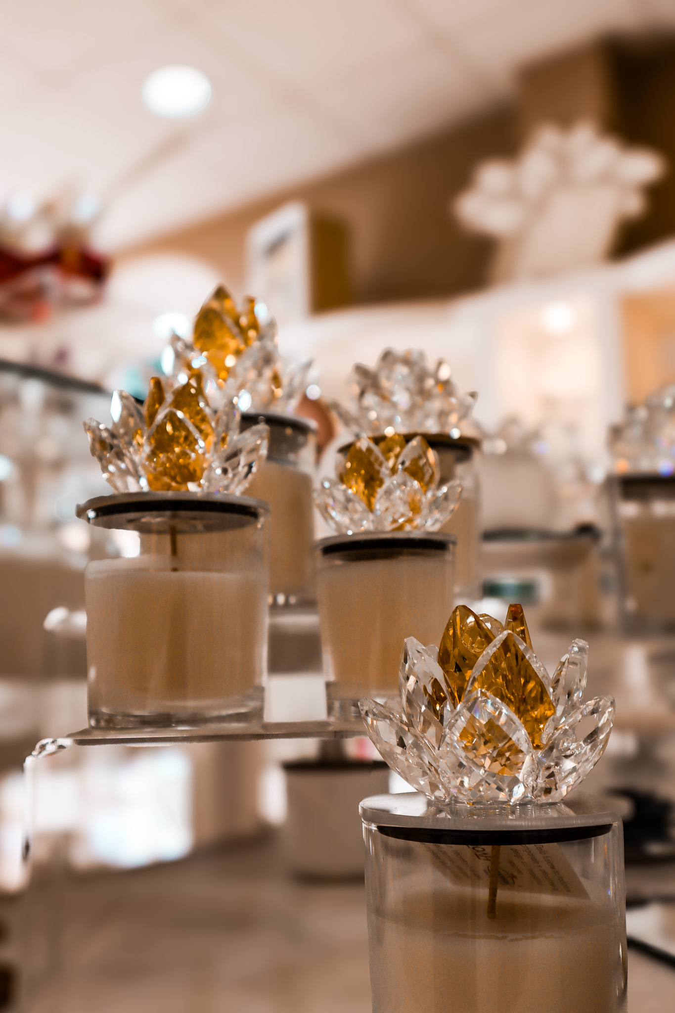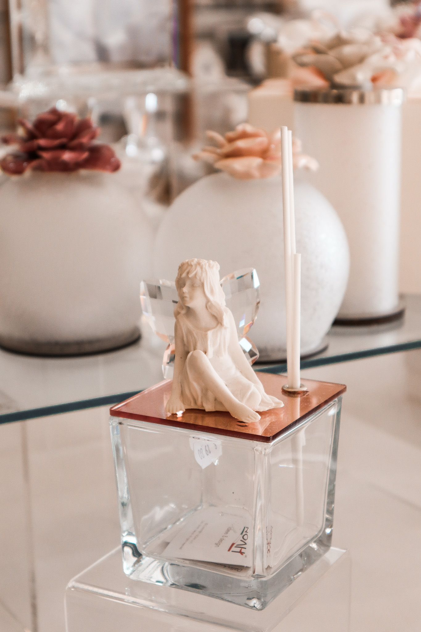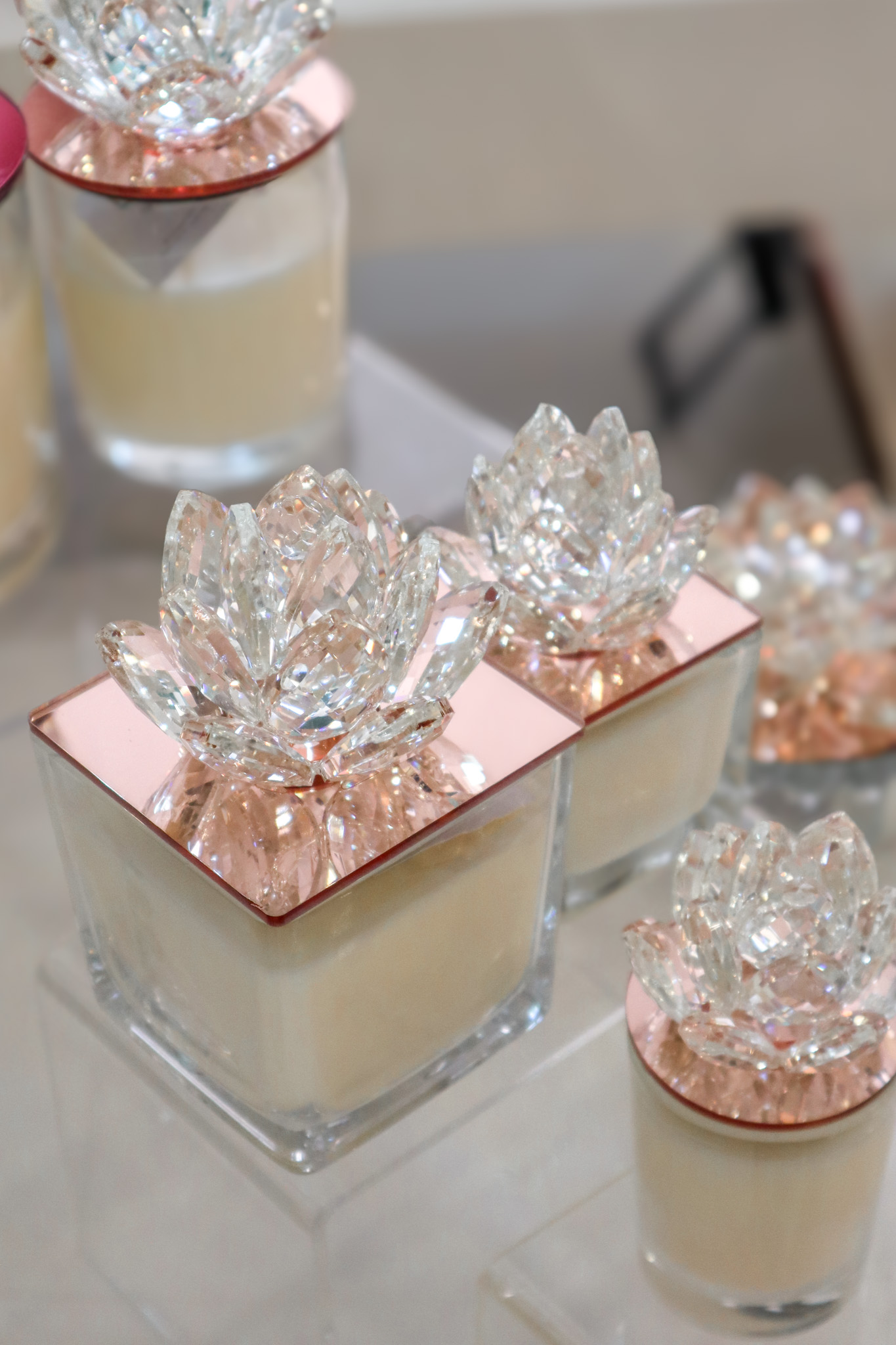 Ultimissima creazione: candele in cera di soia, super profumate, con coperchio a specchio e decoro in vetro o in porcellana colorata.